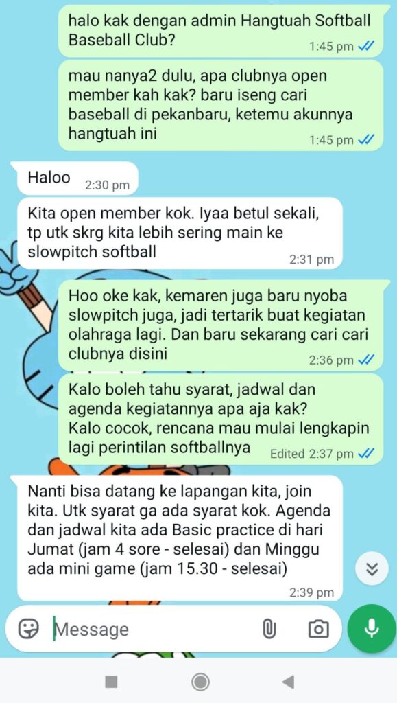 11 Maret 2026 : Naramadi Mau Daftar Clus Baseball di Pekanbaru Tinggalkan Komentar / Cerita Random / Oleh naramadi Hari ini menemukan club baseball di Pekanbaru dan langsung chat whatsapp dengan niat ingin bergabung